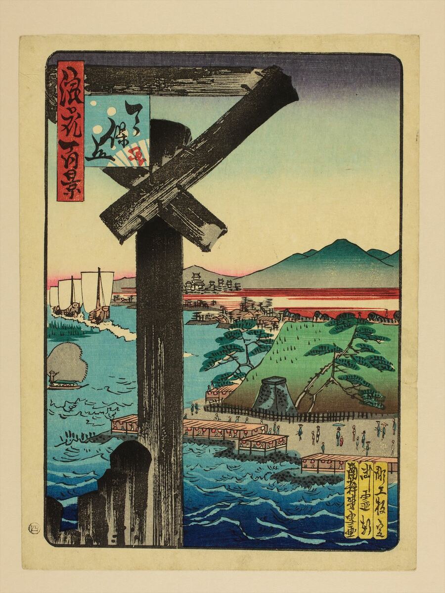 天保山 (浪花百景) 1800年代。南粋亭芳雪/画(歌川芳雪, CC BY 4.0, ウィキメディア・コモンズ経由で)