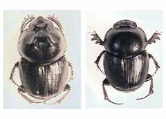 図4.コブマルエンマコガネのオス(左)とメス(右)(著者撮影)