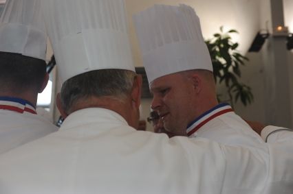 審査員団の総まとめ役を務めたミッシェル・ロット氏は、パリのホテル・リッツのシェフ。MOFのタイトル保持者である証しのメダルを胸にしている