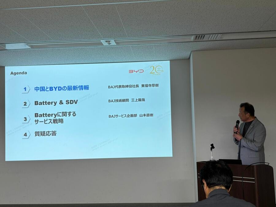 BYDの急速充電スペックがすさまじい!5分間の充電で400km走行、日本はもとより欧米の上級モデルも圧倒 日本でのBYDブランド各モデル。今年2月に神奈川県内で実施された、日本自動車輸入組合(JAIA)の試乗会にて(写真:筆者撮影) (画像1/5) 都内で開催された説明会で説明をするBYDオートジャパン代表取締役社長の東福寺厚樹氏(写真:筆者撮影) (画像2/5) 「スーパー e-プラットフォーム」に関する説明図(写真:筆者撮影) (画像3/5) BYDオートジャパンが東京オートサロンで行ったアンケート調査の結果(写真:筆者撮影) (画像4/5) 認定中古車対策の3施策(写真:筆者撮影) (画像5/5) BYDの急速充電スペックがすさまじい!5分間の充電で400km走行、日本はもとより欧米の上級モデルも圧倒 この写真の記事を読む