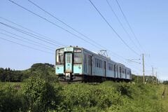 田園地帯を走る青い森鉄道の列車(青森県平内町、2019年7月撮影/写真:共同通信社)
