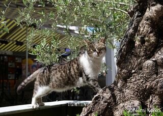 スロベニアの小さな町でのんびりと散歩する猫たち