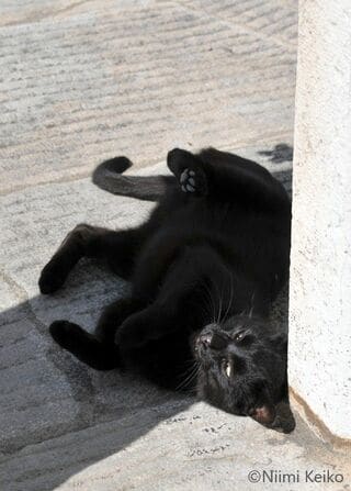 「みんなでかわいがっている人気者なの」それを聞いて猫はゆっくりとノビをし、挨拶してくれた