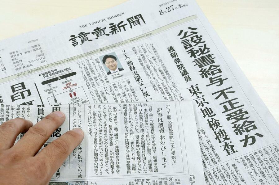 読売新聞「あってはならない重大な誤報」のおわびに欠けている意識、“1面で謝罪”でも通用しない現代の訂正の作法