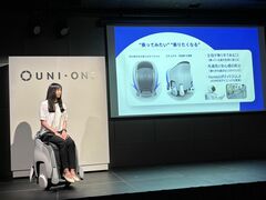 ホンダの手放しで乗れるパーソナルモビリティが世界的にもユニークなワケ、あえて「人混みでも動ける」仕様に UNI-ONE事業責任者の中原大輔氏(写真左)と、サンリオエンターテイメント代表取締役の小巻亜矢氏(写真:筆者撮影) (画像1/5) UNI-ONE記者発表での様子(写真:筆者撮影) (画像2/5) ホンダ関係者がUNI-ONEで傾斜路を走行する様子(写真:筆者撮影) (画像3/5) 全方位移動駆動機構を備えた二輪で自立する仕組み(写真:筆者撮影) (画像4/5) 電池は機体から取り外して充電する(写真:筆者撮影) (画像5/5) ホンダの手放しで乗れるパーソナルモビリティが世界的にもユニークなワケ、あえて「人混みでも動ける」仕様に この写真の記事を読む