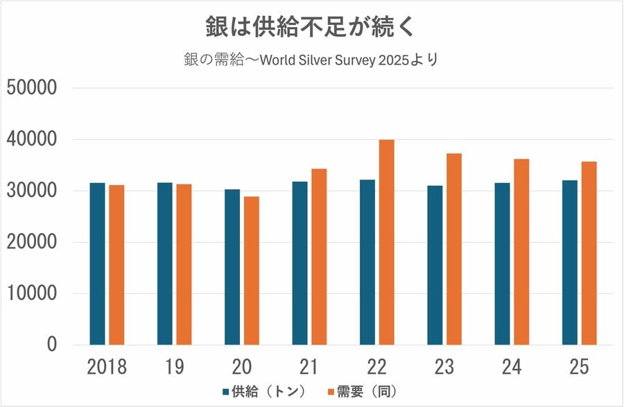 難攻不落だった銀も史上最高値を更新、45年ぶりに塗り替えられた「ハント高値」とは? 銀価格もついに最高値を更新。写真はイメージ(写真:Oselote/Shutterstock.com) (画像1/3) 出所:田中貴金属工業資料をもとに筆者作成 (画像2/3) 注:2025年は予測 (画像3/3) 難攻不落だった銀も史上最高値を更新、45年ぶりに塗り替えられた「ハント高値」とは? この写真の記事を読む