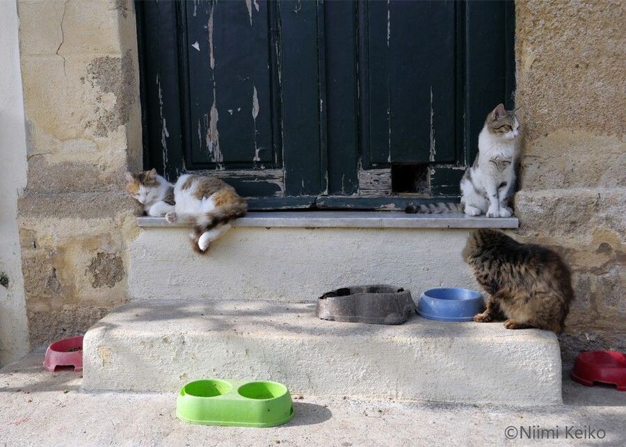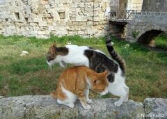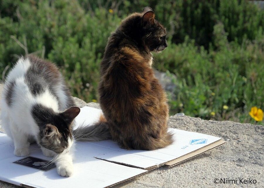 トラ猫と白黒猫は恋人同士?体を寄せ合いゆっくり歩いて、互いにゴッツンコ