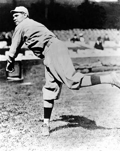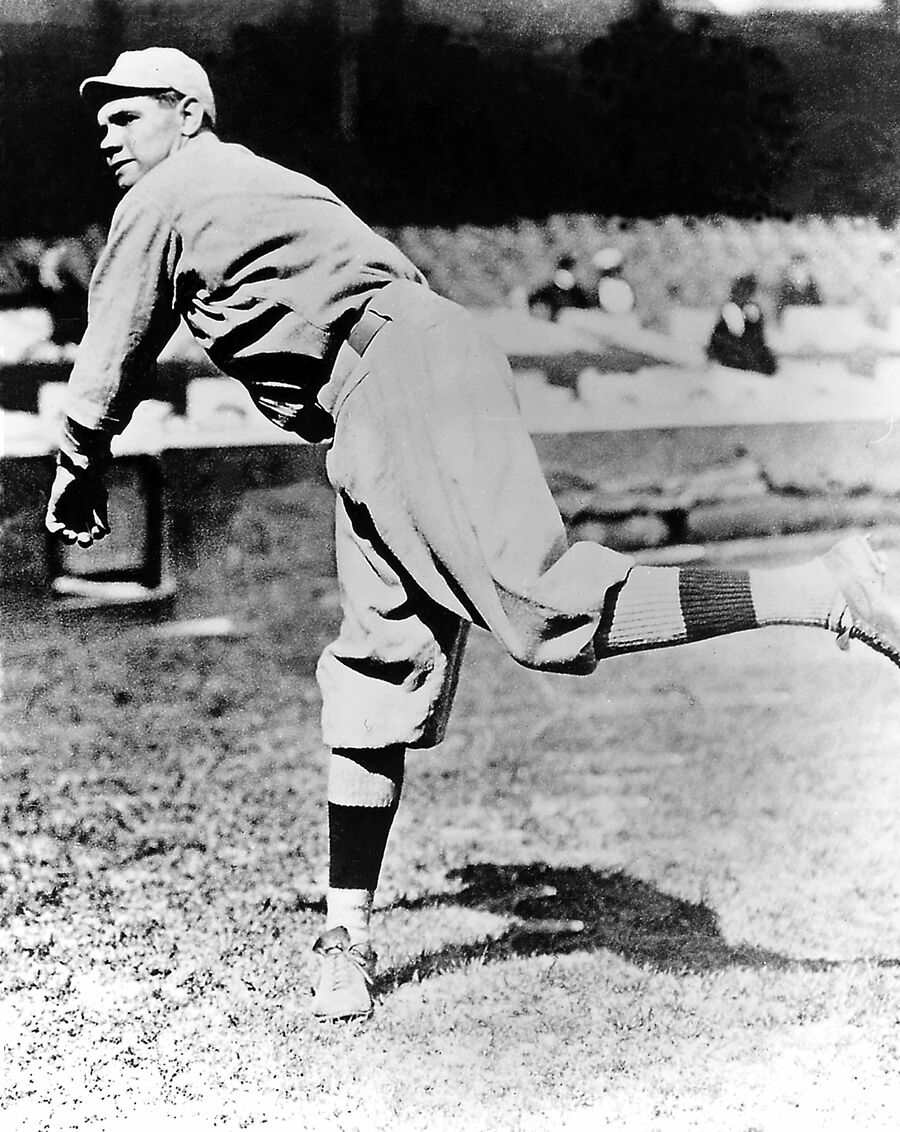 1917年、レッドソックス時代のベーブ・ルースの投球フォーム(写真:アフロ)