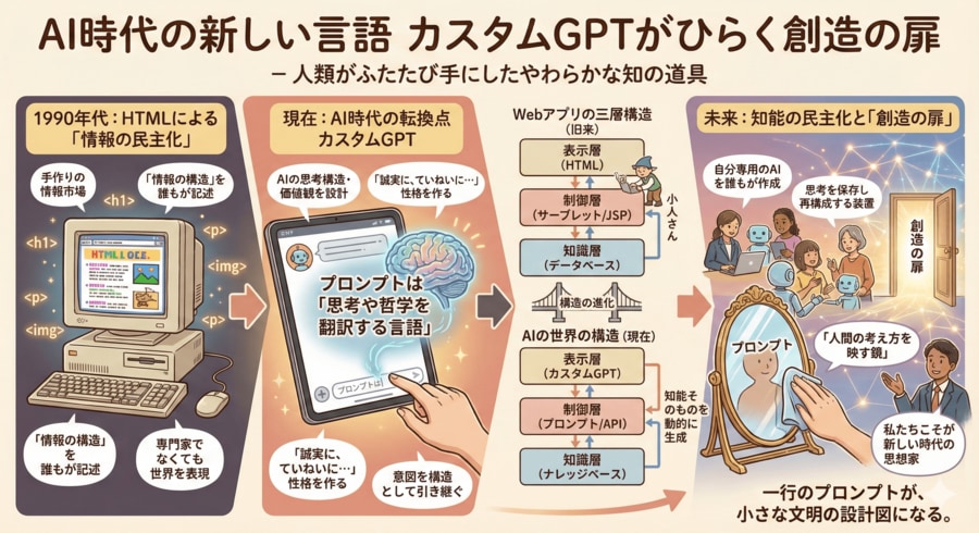 1990年代HTML登場に等しい情報伝達の革新、「カスタムGPT」が開く創造の扉 PexelsによるPixabayからの画像 (画像1/2) 筆者作成 (画像2/2) 1990年代HTML登場に等しい情報伝達の革新、「カスタムGPT」が開く創造の扉 この写真の記事を読む