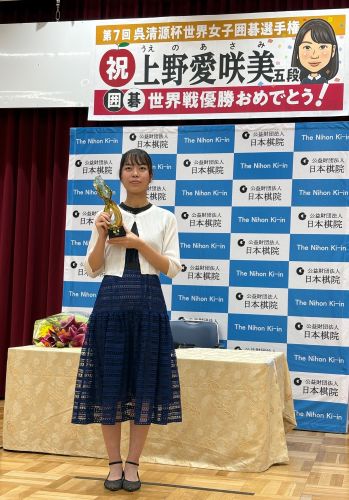 上野愛咲美女流名人(2024年12月、呉清源杯優勝記者会見にて/筆者撮影)