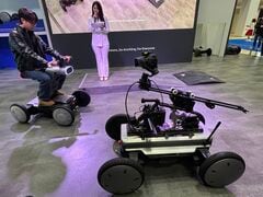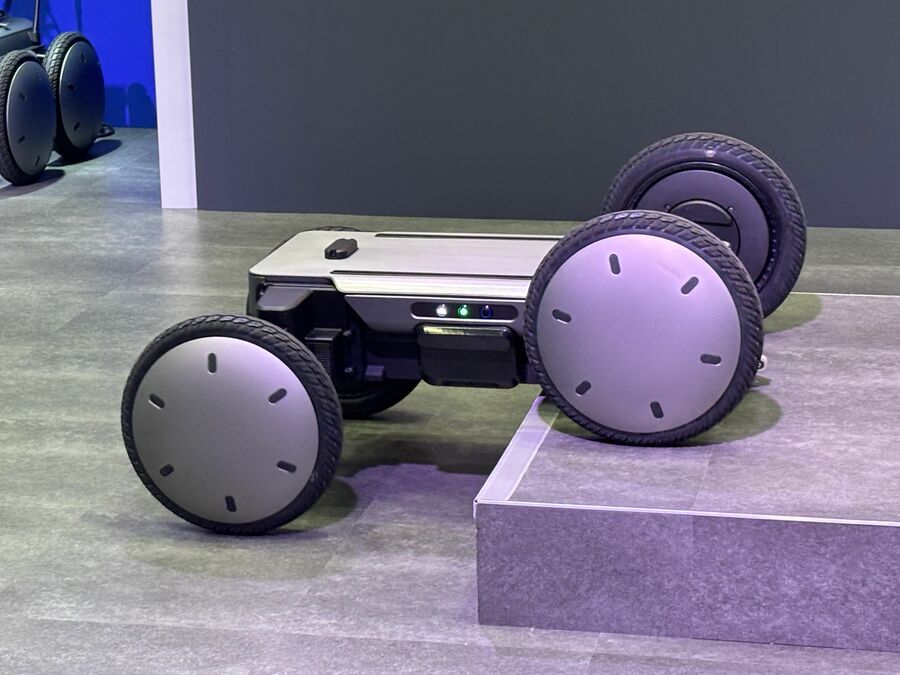 韓国ヒョンデのモビリティロボットプラットフォーム「MobED」。約200mmの段差を上手に通過する様子(写真:筆者撮影)