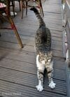「みんなでかわいがっている人気者なの」それを聞いて猫はゆっくりとノビをし、挨拶してくれた