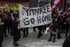 トランプ大統領の領有発言に抗議する人々(写真:ロイター/アフロ)