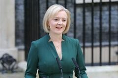 2022年10月25日、退任する英国首相リズ・トラス氏は、ダウニング街で国内外のメディアの前で最後の声明を発表した(写真:Steve Taylor/SOPA Images via ZUMA Press Wire/共同通信イメージズ)