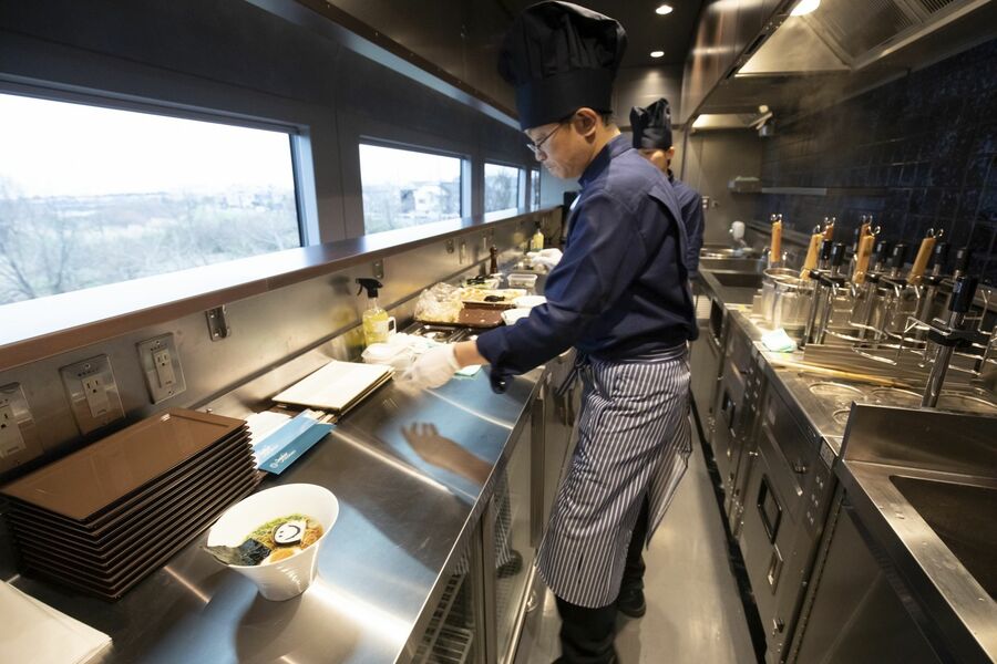 オープンスタイルのキッチンを構えるカフェテリア。専用サイトの「サフィールPay」よりスマートフォンでメニューを予約する