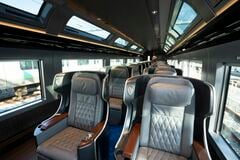 伊豆急下田寄りの1号車はプレミアムグリーン車。海の方角へ30度ほど座席を回すこともできる