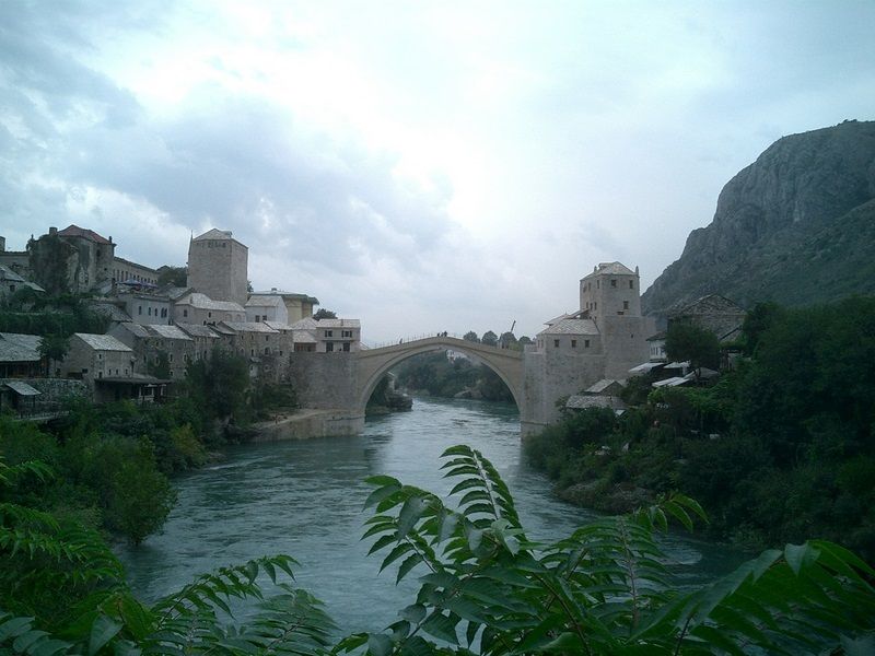 モスタルを流れるネレトバ川にかかる「スタリ・モスト」 ボスニア・ヘルツェゴビナ紛争で破壊された後架け直された「新品」である