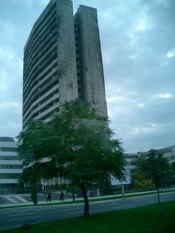 サラエボ中心部に建つビルは弾痕だらけ。長い間焼け焦げたままで放置されていた