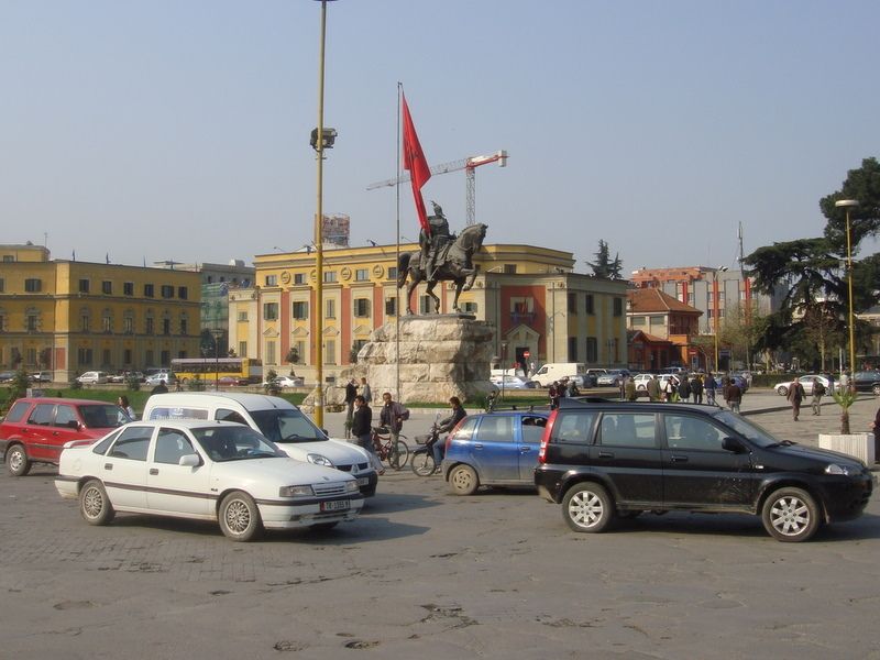 アルバニアの首都ティラナ中心部に建つスカンデルベクの銅像
