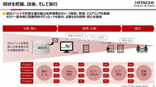 デジタル・マーケティング・チームの活動は、最初から順風満帆だったわけではない。もともと日立製作所は特定の顧客と直接に接点を持ち、関係性を深めていくアカウント営業が中心の企業だ。そのため、ウェブやメールのアクセス数などのデジタルデータが、本当に営業活動に役立つのか疑う声も多かったという。佐藤氏は10部門近くの営業部署に声をかけたが、実際に賛同してもらえたのは数部門という状況で、活動はスタートした。