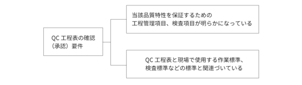 新製品の工程設計段階では設計部門、生産技術部門、製造部門がQC工程表を作成するケースが多いことから、複数の部門の管理者がその内容を確認することになる。ただ、QC工程表は製造品質を保証する方法を定めているため、品質保証部門が最終的にQC工程表を承認するよう、筆者はコンサルティングの場で推奨している。