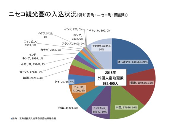 「ニセコの人口は約5000人、うち海外からの移住者が約500人となっている。海外からの移住者は、以前はイギリスからが主であったが、現在はオーストラリア、英国、米国、アジアなど34カ国から移住してきている」