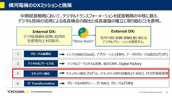 - 横河電機のDXミッションと、施策における4つの柱