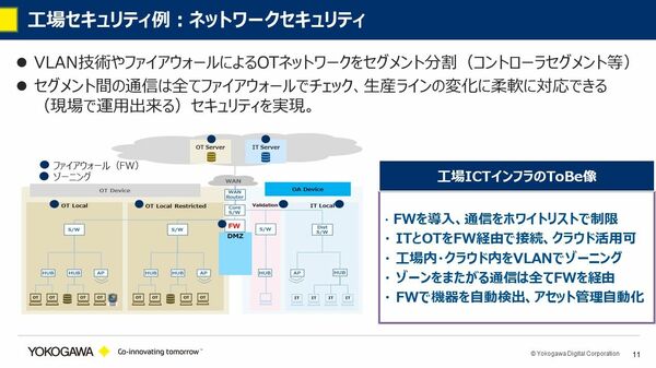 一例をご紹介すると、工場のネットワークセキュリティに関しては、セグメント分割をしています。