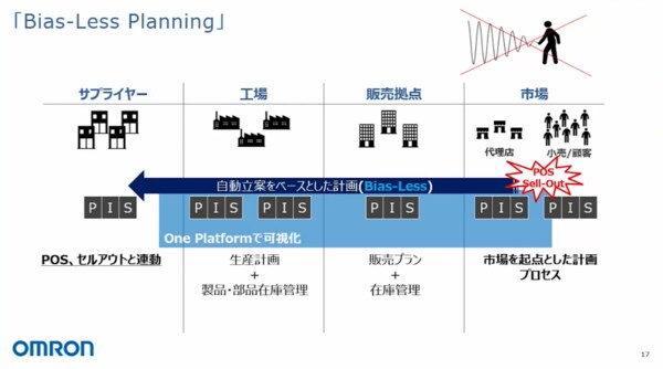 井沢氏 また、市場からサプライヤーにサプライチェーンをつないでいく、可視化していく活動をしてきました。下の図はタイトルが「Bias-Less Planning」となっていますが、これは全体を貫くコンセプトのような話です。