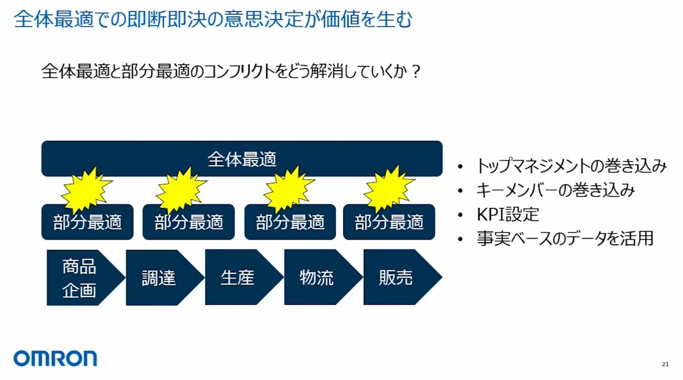まず、全体最適での即断即決の意思決定が価値を生むということです。サプライチェーンは全体最適なので、全体最適な意思決定ができなかったら価値がないと考えています。