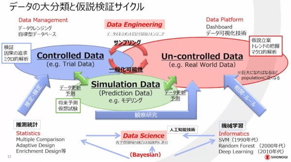 最近は、それぞれシミュレーションでデータを生成しながら、さらにデータをリッチにしていくようなケースもあります。例えば推測統計のような検証で使う方法と、機械学習で相関ルールを見つけて仮説を立案するようなケースなど、いろいろなものをうまくミックスさせながら実際に仮説検証サイクルを回していくのがデータサイエンスであると認識しています。 また、データのマネジメントとデータプラットフォームをうまく管理することは、データエンジニアリングとして非常に重要なポイントになってきています。