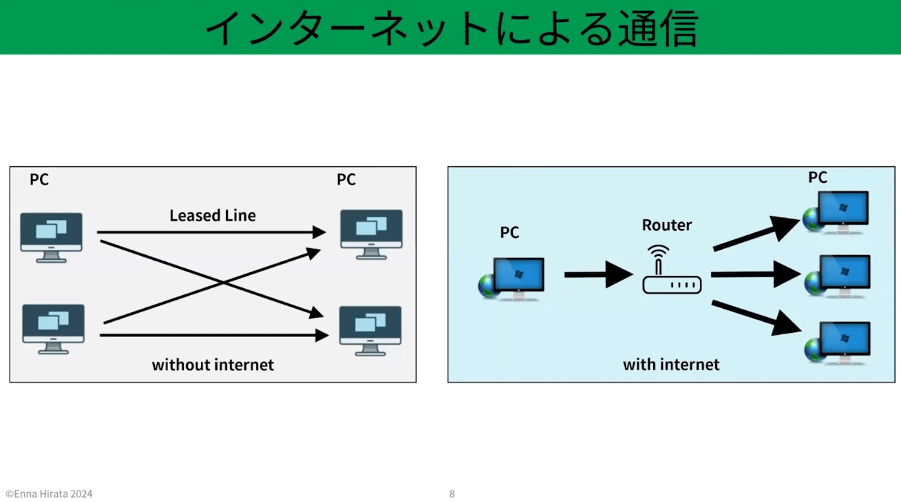 インターネットがなかった時代、パソコンは専用線を使って一対一で接続するしかできませんでした。これは現状の物流ネットワークと同じです。ところが、インターネットが実現してからは、ルーターを介して世界中のパソコンと接続できるようになりました。しかも、その接続スピードが画期的に速くなりました。