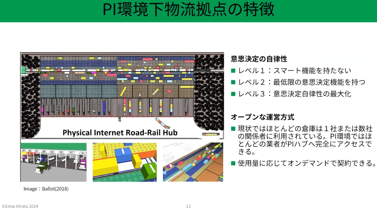 平田氏 続いて、フィジカルインターネット環境下にある物流拠点の特徴について少しご紹介します。