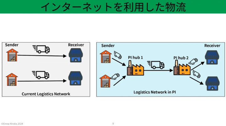 - デジタルネットワークの考え方を応用するフィジカルインターネットの仕組み