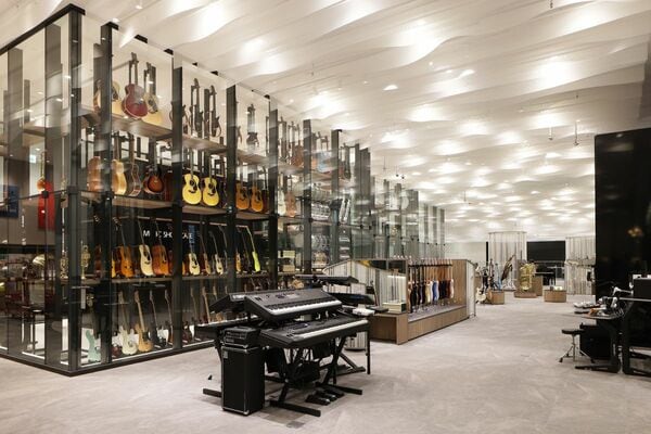2024年6月にオープンしたブランドショップ 、ヤマハミュージック 横浜みなとみらいの楽器コーナー