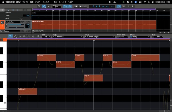 歌声合成ソフト「VOCALOID™6」の操作画面