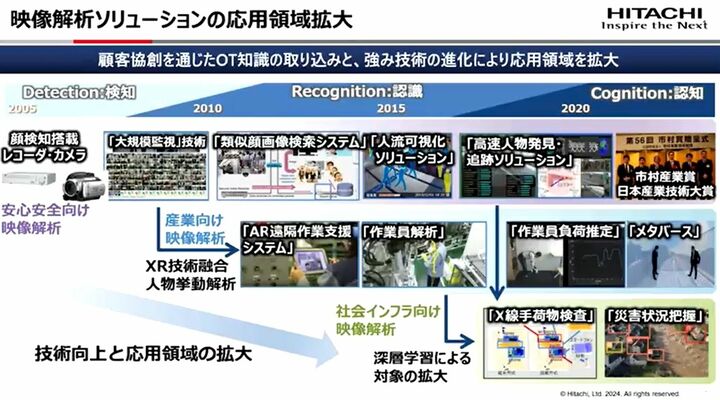はじめに、日立のAI・メディア処理研究の事例として映像解析技術にフォーカスし、これがどのように進化を遂げてきたのかを見ていこう。