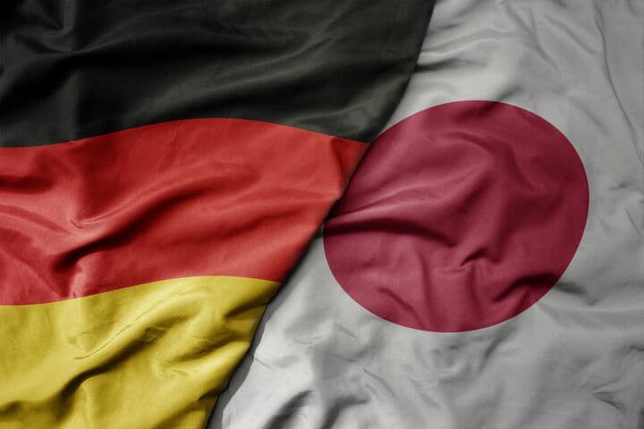 2023年の貿易総額(輸出+輸入)で見れば、ドイツの3兆1700億ドルは、中国、アメリカに次ぐ世界第3位の数字であり、世界第5位の日本は1兆5030億ドルにすぎない。比較すると、ドイツは日本の2.1倍ある。また、名目GDPに占める輸出の比率(2023年)を見ても、日本は17%であるのに対し、ドイツは38%である。