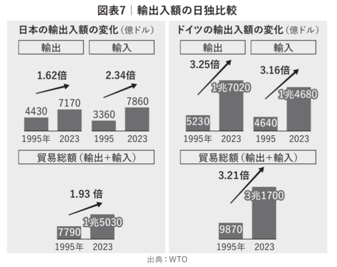 日本とドイツの輸出と輸入を比べてみよう(図表7)。
