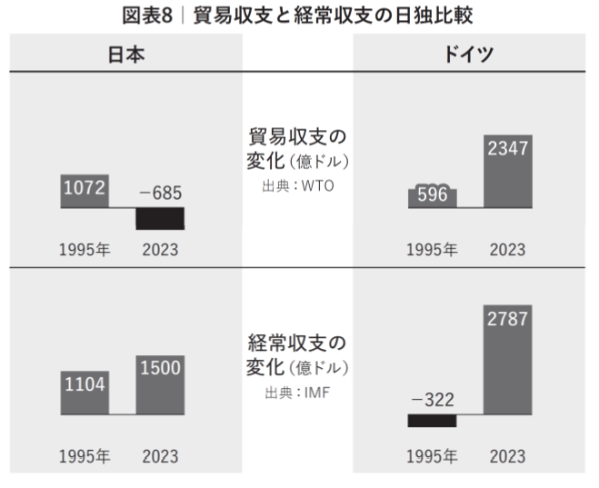 「輸出入額」「貿易収支」といったデータを読み解き、日本が失い、ドイツが手にした経済成長の構造を分析する。