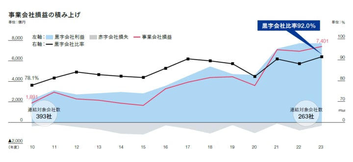 - 同社傘下の事業会社の黒字会社比率が向上してきた推移