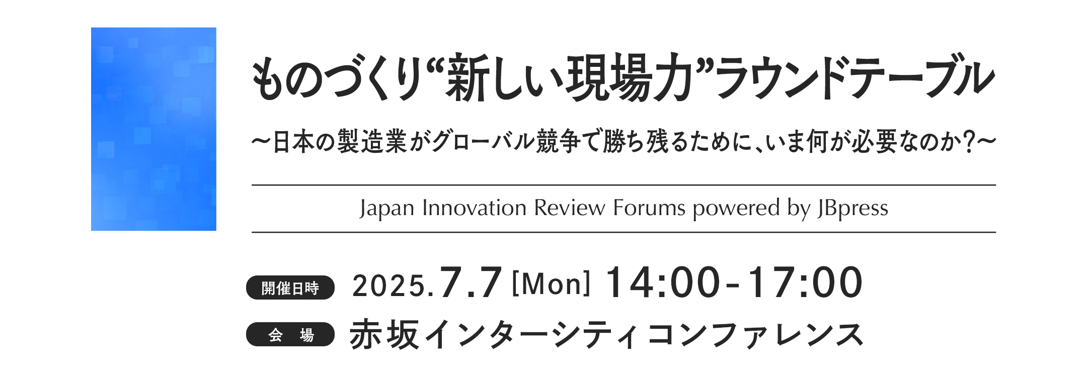 今回、モデレータの遠藤功氏、三菱電機の田中貴久氏、ヤマハ発動機の茨木康充氏と共に、本ラウンドテーブルで議論していただく参加者の方を募集いたします。