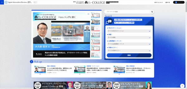 Japan Innovation Review COLLEGEが2024年11月25日(月)にオープンしました。企業変革専門メディア「Japan Innovation Review」が提供してきたえりすぐりのセミナーの人気講座を中心に、変革推進に伴う悩みを解決し、実行を手助けするための「学び」に直結するコンテンツをまとめてご提供します。ぜひご覧ください。