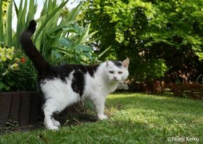 ピアノの鍵盤を思わせる白壁と黒猫、さすがショパンの生誕地ワルシャワ