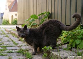 路地の真ん中で「とおせんぼ」をするデンマークの猫