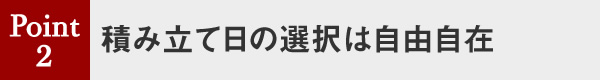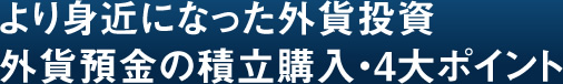 2つ目は、毎月、毎週、毎日など積み立て日を自由に設定できること。月1回まとめて購入してもよいし、毎日少しずつ貯めるのもよい。この機能を利用すれば、自分の好きなタイミングで時間を分散して積み立てを実践することが可能だ。積立購入は、一度にまとめて買い付けをする通常の購入方法とは異なり、時間の分散により購入レートを平準化できる利点がある。いわゆる「ドルコスト平均法」と呼ばれる投資方法で、指定した日に決まった額の円で購入することで、外貨が安いとき(=円高)には多く、高いとき(=円安)には少なく買うことができ、平均買い付け価格を下げる効果が期待できる。購入設定を「毎日」にすれば、そのメリットを最大限に生かすことができるだろう。積み立て日を一度決めれば、そのあとは購入の時期に頭を悩ませる必要がないため、マーケットの動きに慣れていない初心者にとっても挑戦しやすい。