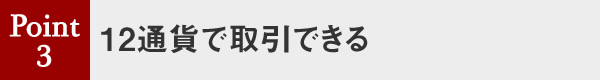 3つ目は、12通貨で取引可能なこと。米ドル、ユーロ、英ポンド、豪ドル、ニュージーランドドル、カナダドル、スイスフラン、香港ドル、ブラジルレアル、人民元(CNH)、南アフリカランド、スウェーデンクローナという豊富なラインアップが用意されている。利用者は、先進国から新興国まで豊富な選択肢から積み立て通貨を選択できる。