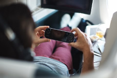 業界最大級の大きさとなる18.5インチのパーソナルスクリーンに加えて、手元で操作するビデオハンドセットにも小さなスクリーンがついており、それぞれで別のエンターテインメントを楽しめる