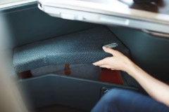 座席脇やアームレストの下、オットマンの下など、豊富な収納スペースがあるため、必要なものをストレスなく取り出せる