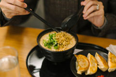 キャセイパシフィック・ラウンジの象徴ともいえる「ザ・ヌードル・バー」では、担々麺やワンタン麺をはじめとしたアジア各国の麺料理や、本格的な点心を味わえる